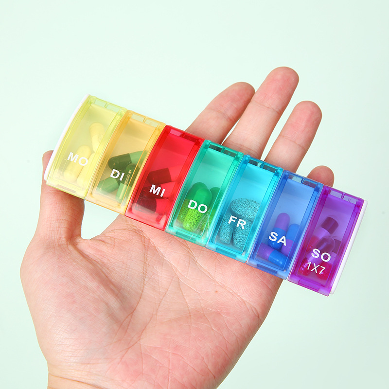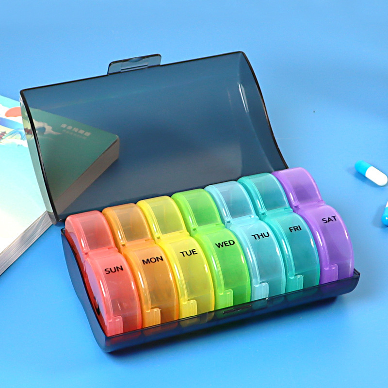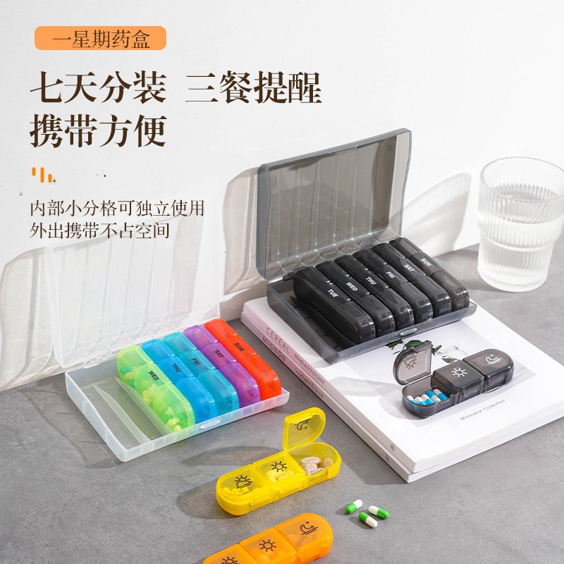 分格包装携帯7色の薬箱旅行分注朝と晩の薬箱携帯プラスチック分格分薬器