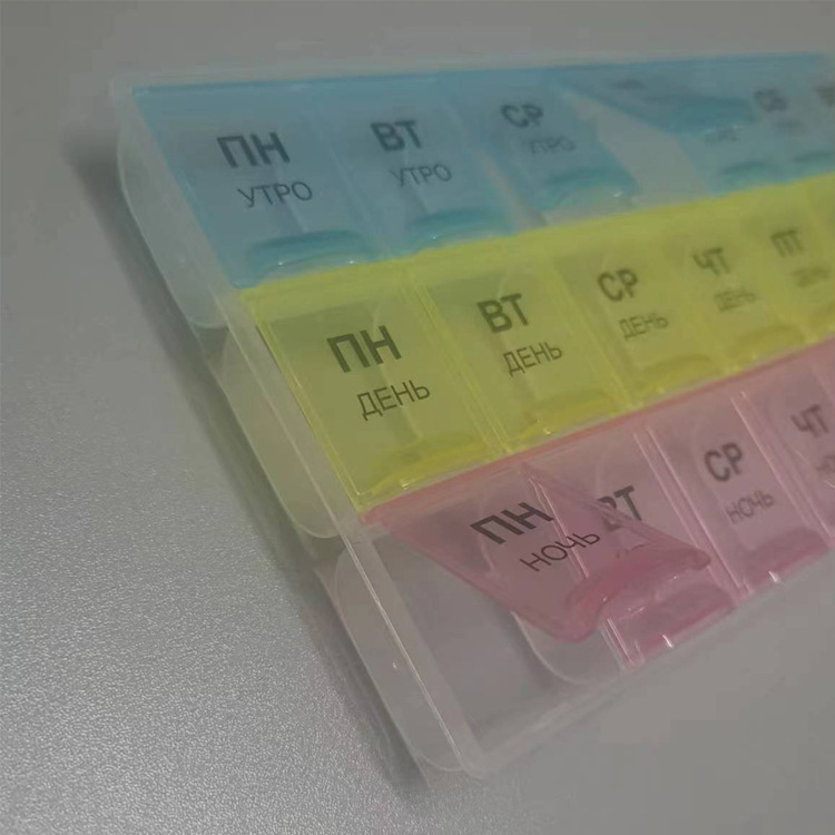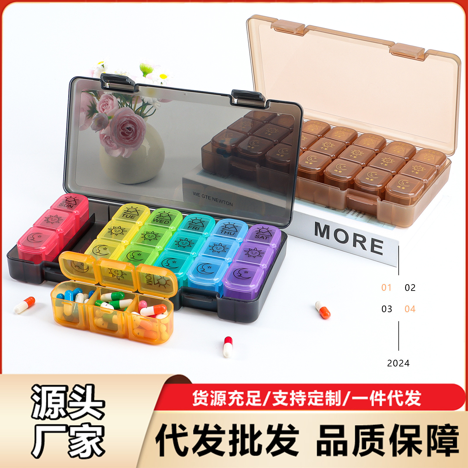 メーカー卸売り週7日21格カラー薬箱PP食品級密封大容量錠剤分注薬箱