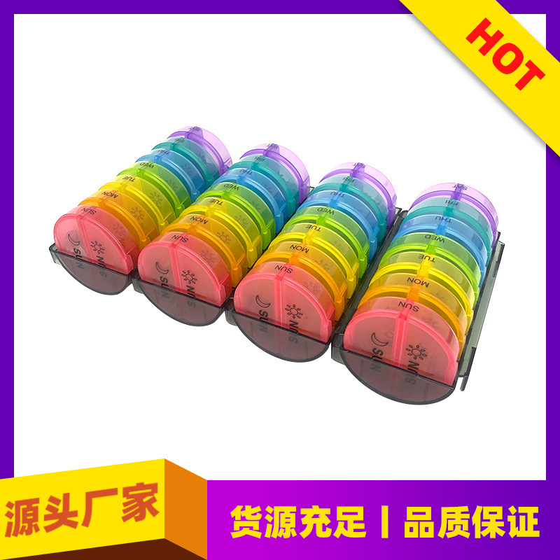 新品ラウンド14マスドラッグ7日朝晩ピル分注ボックス旅行ポータブル分割可能防塵収納ボックス