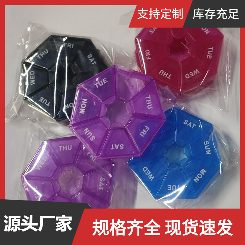 一週間七格薬箱カラー透明プラスチック錠剤分格箱老人七日間携帯収納箱七角箱
