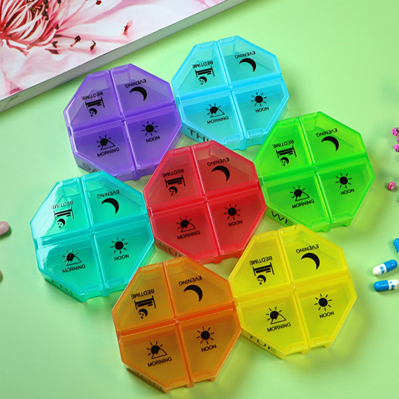 アマゾン新製品薬箱一週間七日間薬箱28格密封防湿薬箱携帯4格分注薬箱