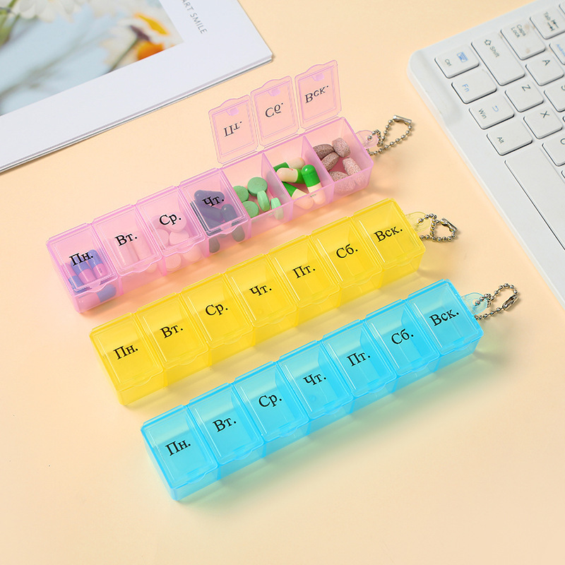アマゾンは1週間に7格の透明薬箱7格7日に分けて薬箱携帯分格カプセル薬箱ロシア語を販売している