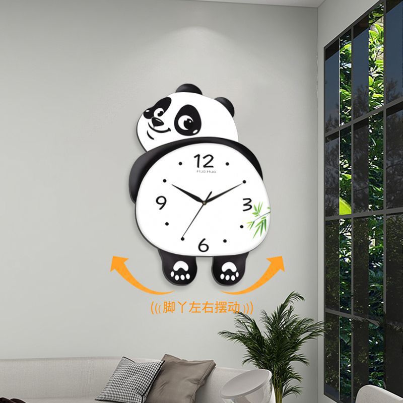 インターネット有名人パンダ壁掛け時計リビングルームホームカレンダー時計クリエイティブクォーツ時計サイレント壁時計パンチフリー時計