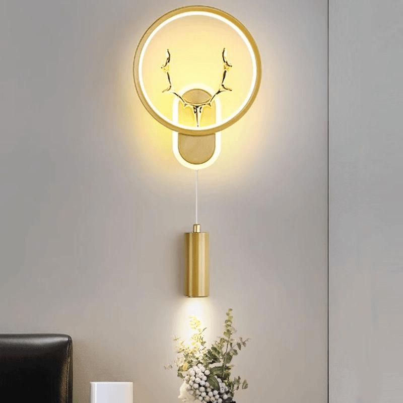 ウォールランプ寝室スタディランプクリエイティブアントラーカレンダーニュースタイルスポットライト付きマスターベッドルームウォールランプベッドサイドランプ