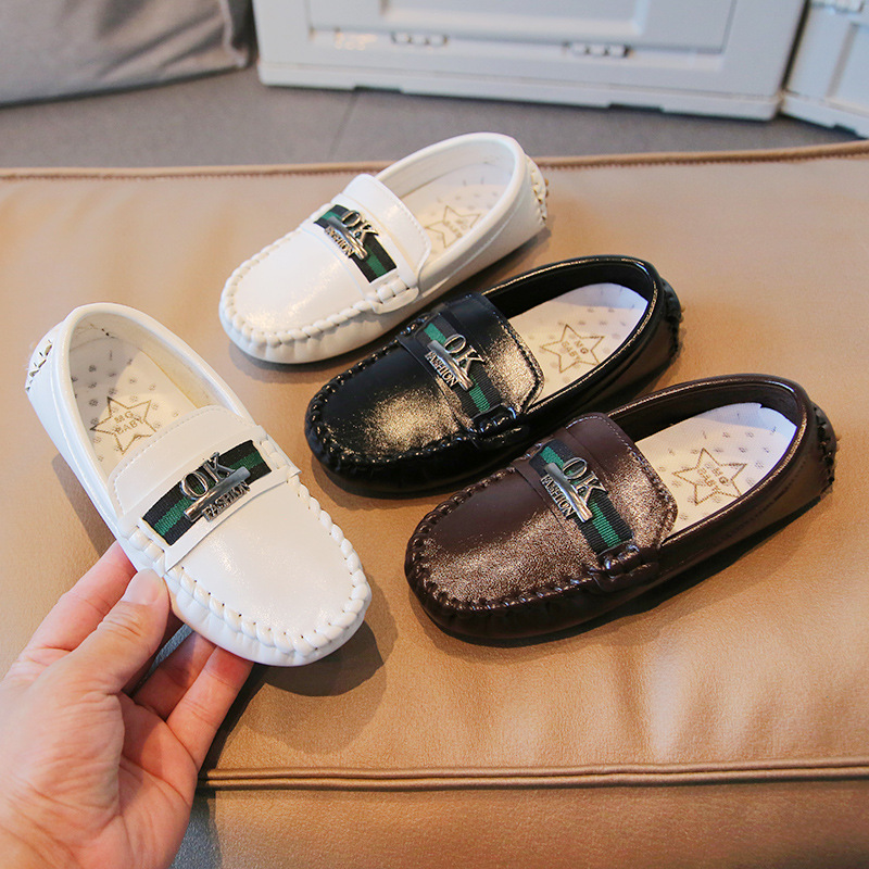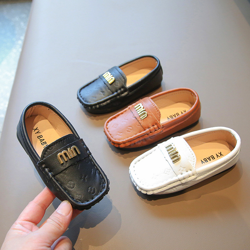 子供の靴2025秋の新型男の子の英倫風豆の靴の中の大きい子供の柔らかい底は足の快適な赤ちゃんの靴をかぶせます。
