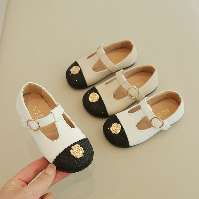 子供の小さい靴2025年春秋の新型の女の子の金属は王女の靴の中の子供の学校の柔らかい底の靴を掛けます。
