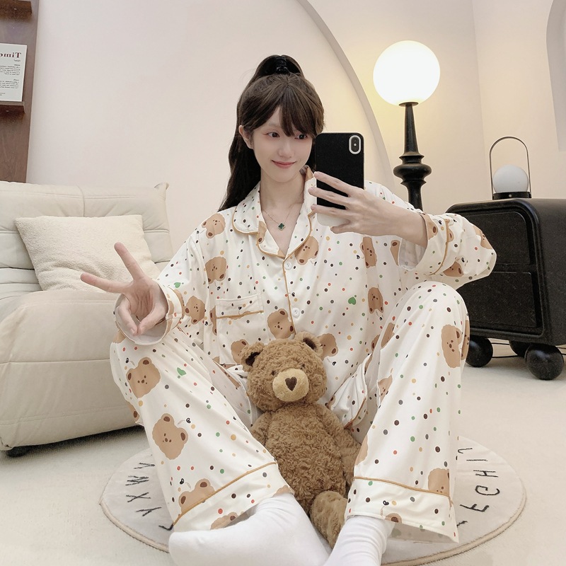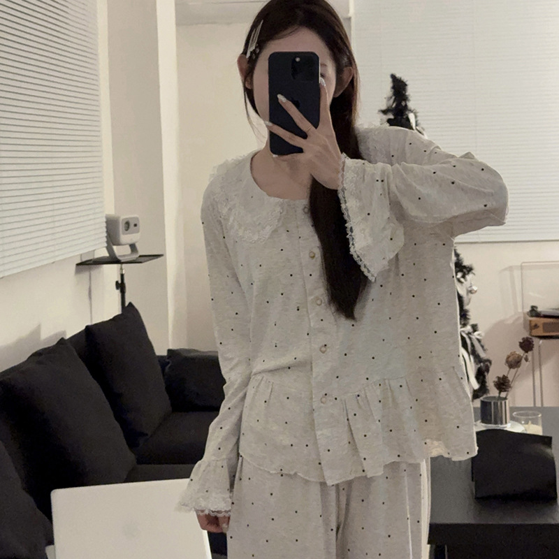 2025新型韓国版春雲綿襟付きカーディガン長袖長ズボンパジャマ女性セットカジュアルルームウェア