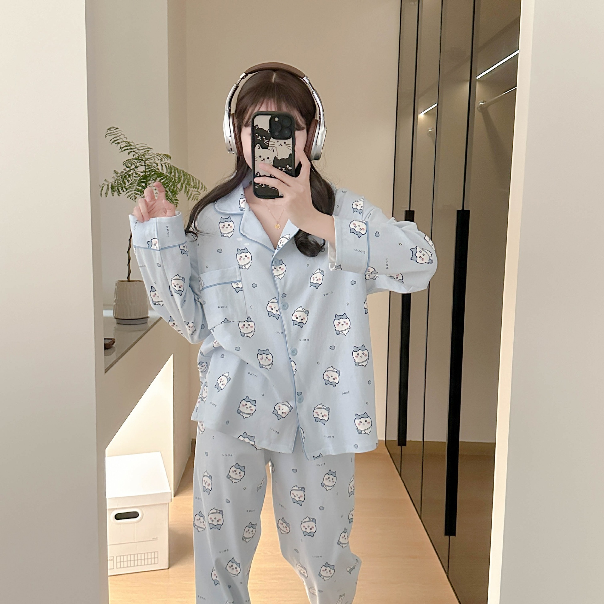 2025新型韓国版アニメ甘い胸付き純綿パジャマ女性春秋長袖長ズボンカーディガン生放送家服