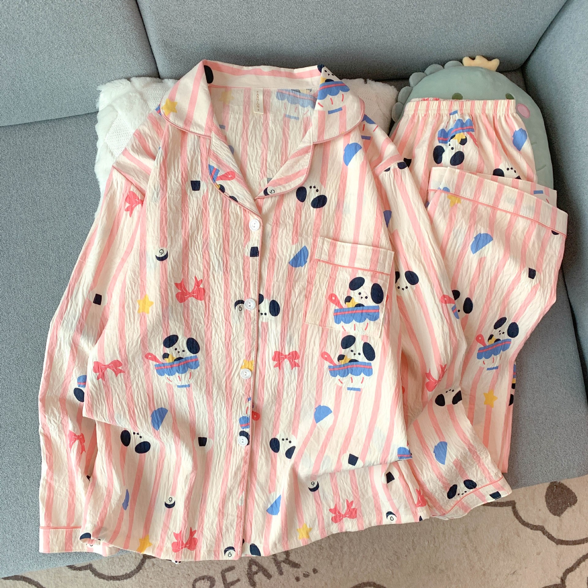 2025新型韓国版アニメ春雲綿胸付き襟付きカーディガン長袖パジャマ女性スーツ家庭服