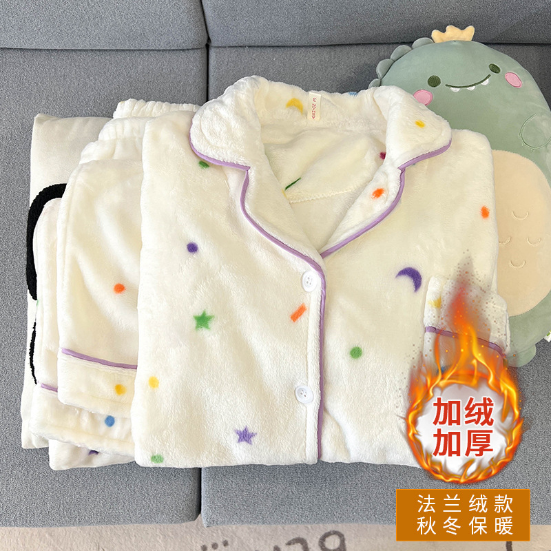 【フランネル】大きいサイズのパジャマの女性の冬のアニメの線の子犬の厚い加毛のかわいい少女の部屋の服のカバー