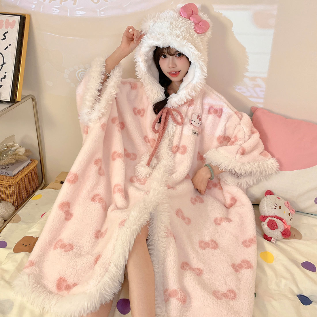 2025新型の冬のパジャマのパジャマの赤い本の同じ種類の漫画のマントのガウンは帽子まで家の服の長い服を着ることができます。