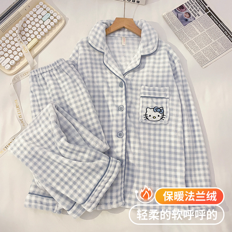 2024冬の新型起爆アニメパジャマ女性フランネルカーディガンアニメ襟甘い家庭服セット