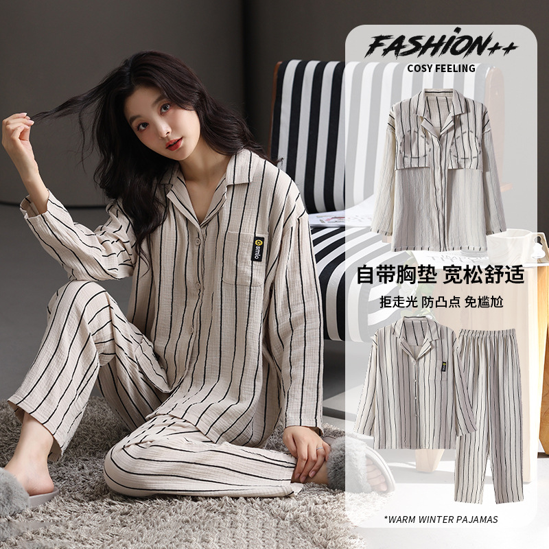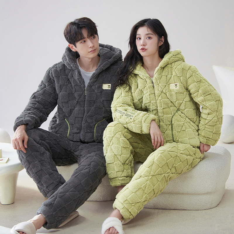 2024新型韓国版ロングパイル三層綿入りパジャマ男女厚手ベルベットシンプル純色ホームウェアセット