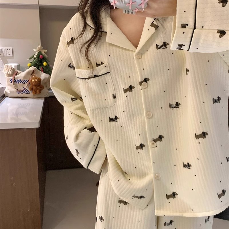 2024冬の新型空気綿アニメ甘いかわいい子犬ネットレッドins風韓国版パジャマ女性ルームウェア