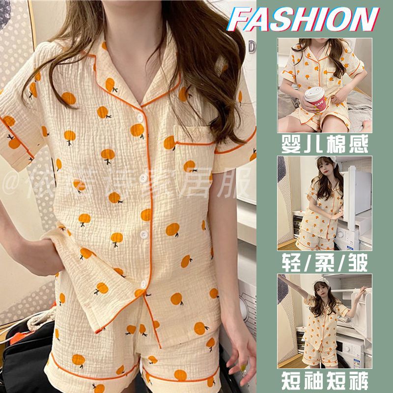 ネットレッドins風夏パジャマ女性半袖薄タイプ赤ちゃん綿感甘い少女カーディガン家庭服2点セット
