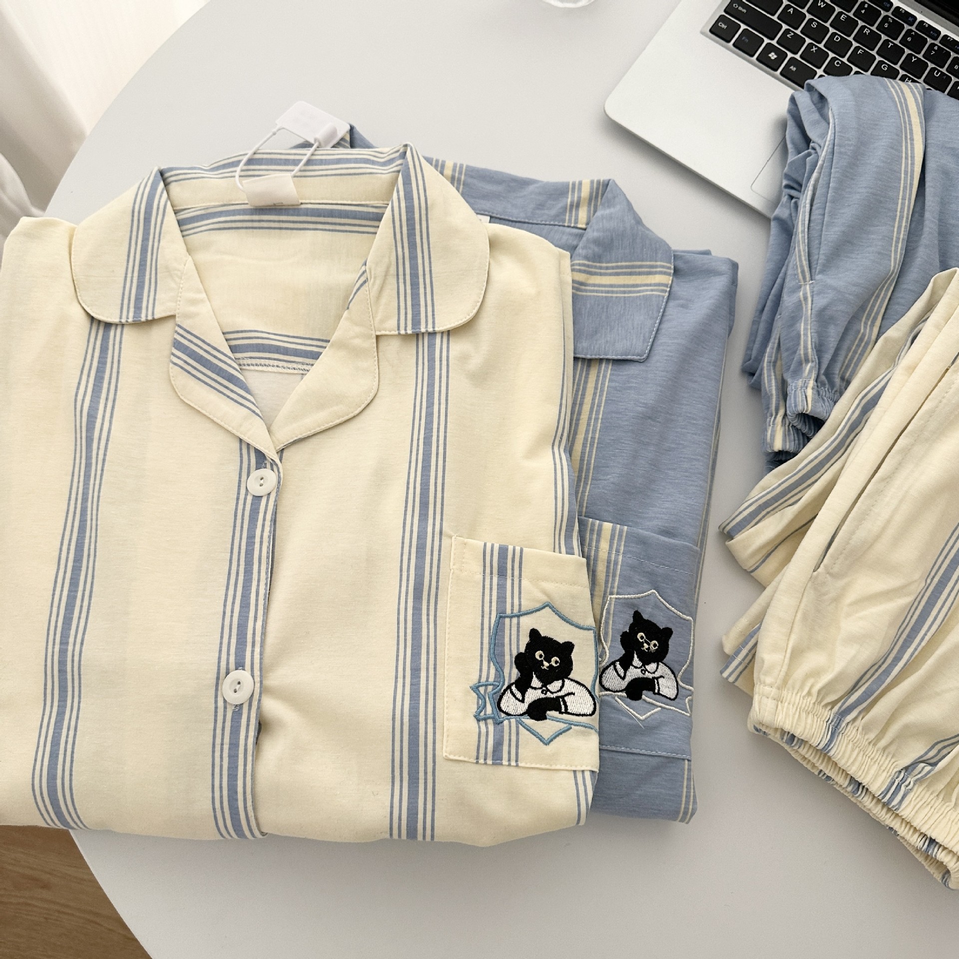 胸パッド付きパジャマ女性の夏の半袖ショーツレース韓国語版インシェフケーキ漫画クラウドコットンホーム服