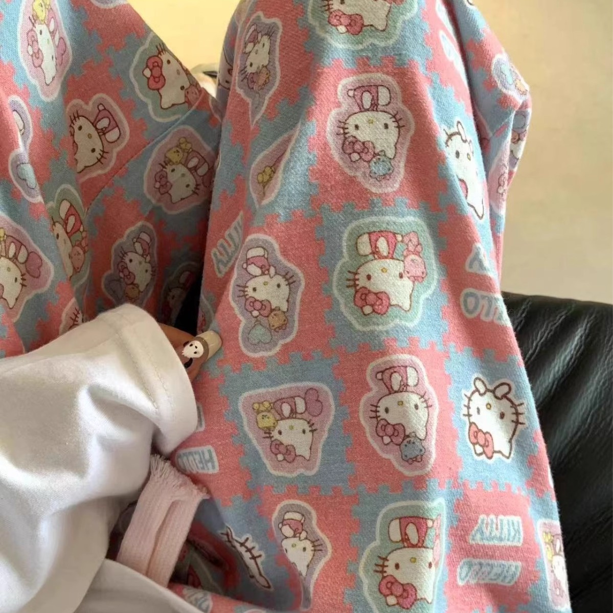 2025年ネット紅ins風長ズボン韓国版散歩曲神ズボン純綿粉ケイティ猫パジャマ女性家服