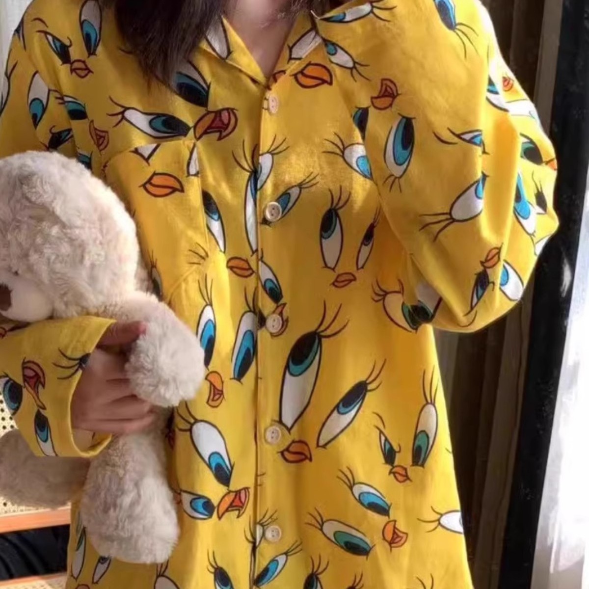 2025年ネットレッドins風韓春秋新作アニメかわいい崔迪鳥パジャマ長袖セットルームウェア