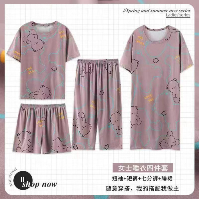 新商品の女性4点セットのパジャマ女性半袖のパジャマアニメ7分のズボンは、爆発的な家庭服セットを着ることができます。