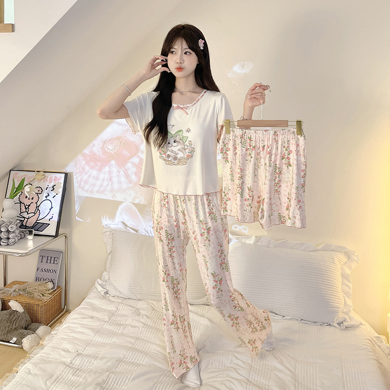 2024新作パジャマレディース夏アイス薄手半袖可爱いインスタ风高颜値レディースホームウェアセット