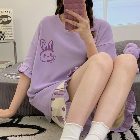 100% 純綿パジャマ女性夏半袖半ズボン学生かわいい韓国版アニメは家庭服女性スーツを着ることができる