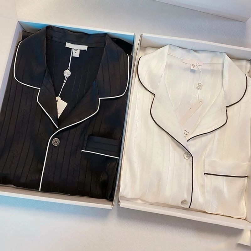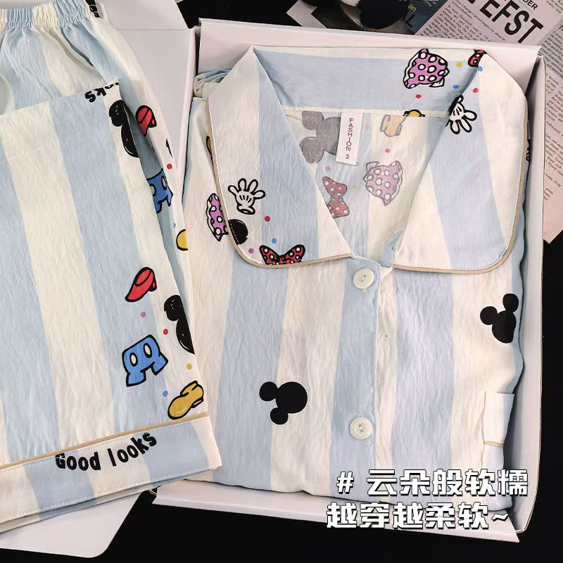 2024カップルパジャマ女性夏アイス薄手長袖かわいいins風高颜値男性ホームウェアセット