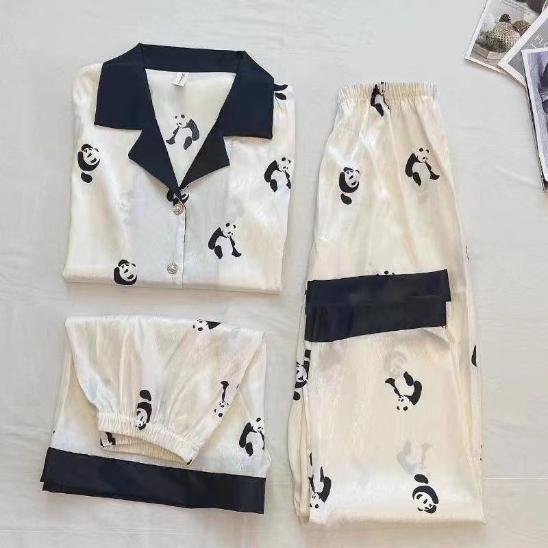 2024生放送で起爆した三点セットの人字斜めジャカード氷糸半袖長ズボンの柔らかいパジャマの女性の家の服
