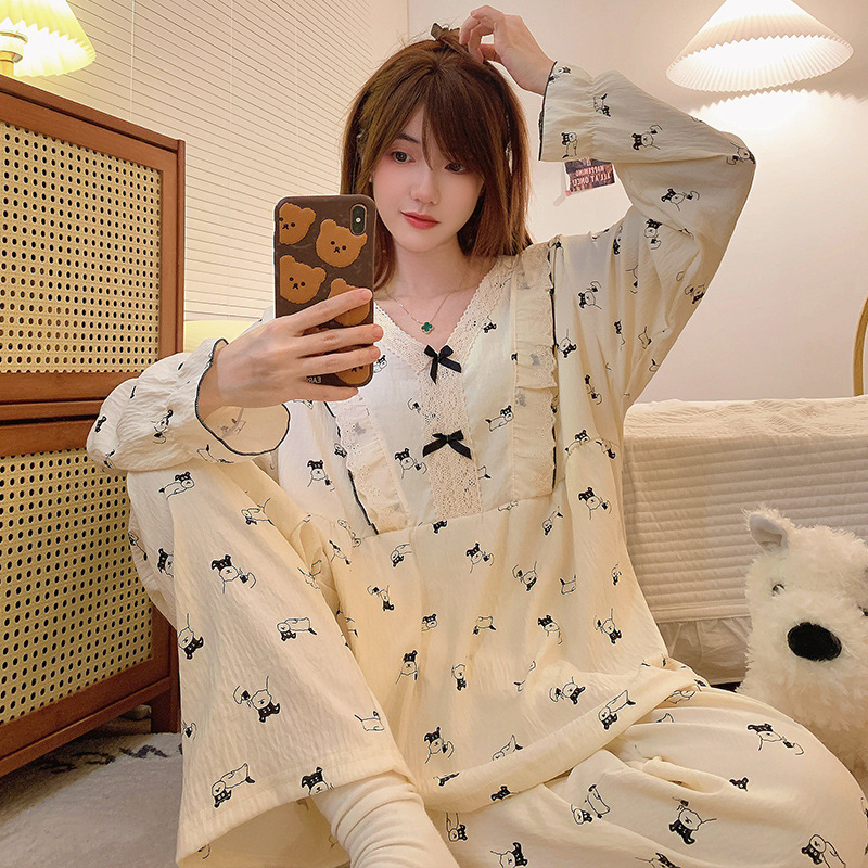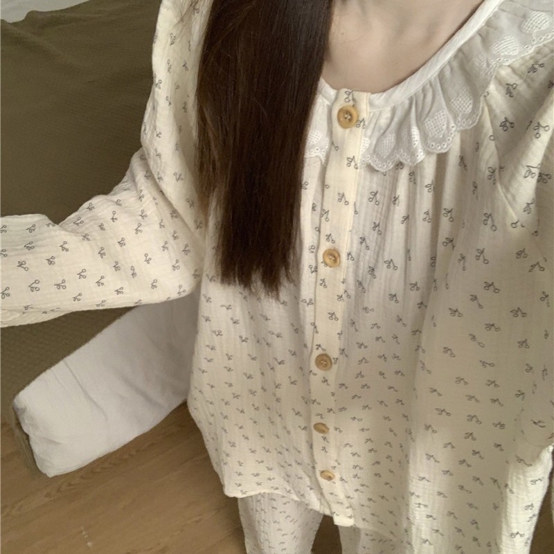2024年新型パジャマ韓国版女性レース花秋ホームウェア長袖長ズボンホームウェアセット
