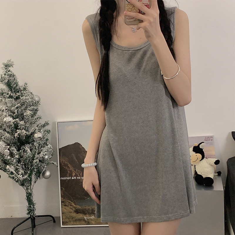 2024夏の新型綿パジャマ女性シンプルカジュアルショートスカート胸パッド付きホームウェア