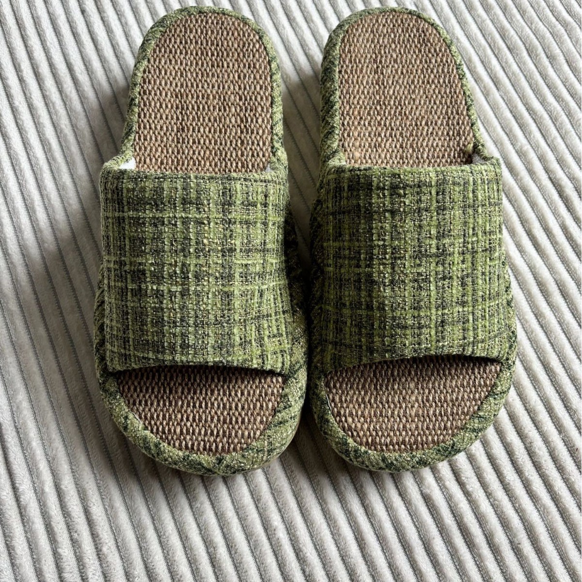 ファッションシンプルな国内販売対外貿易亜麻家庭女性スリッパは底を厚くして耐摩耗性が軽やかな現物である
