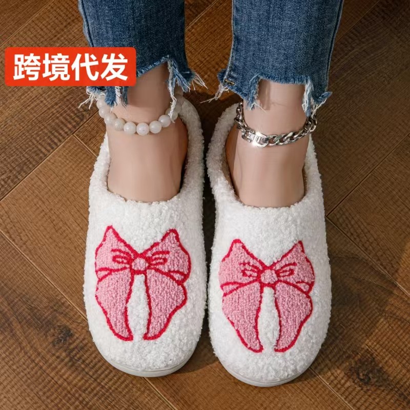 メーカーは国境を越えた新しい蝶ネクタイの装飾スポットのぬいぐるみスリッパを供給している