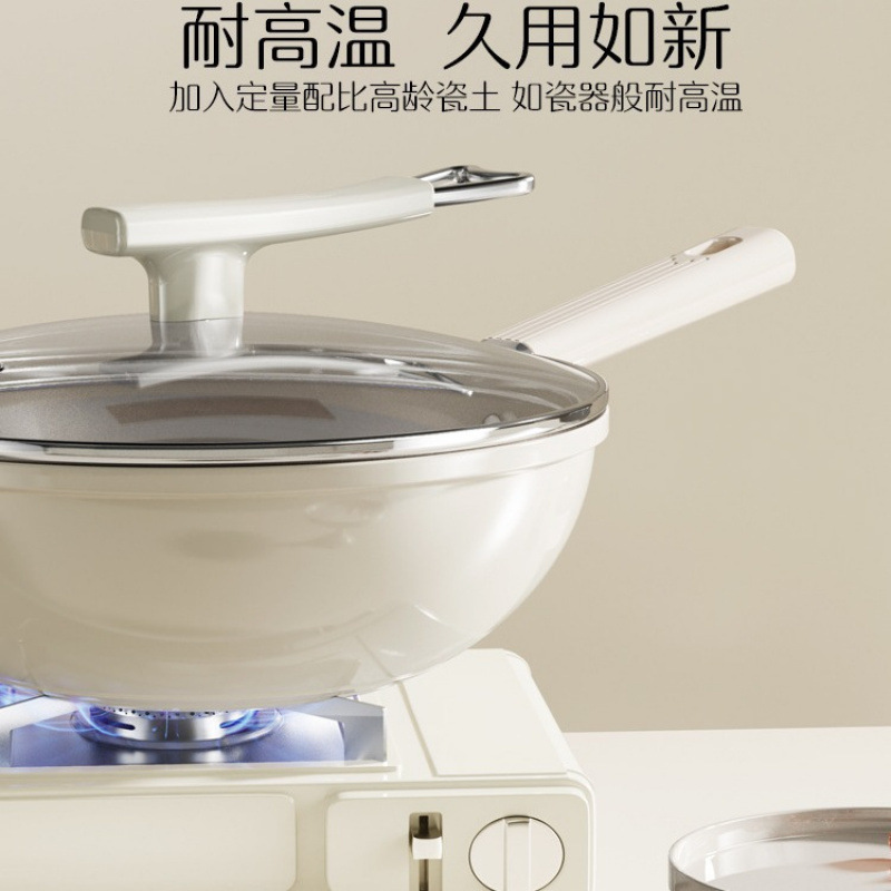 チタン中華鍋ノンスティック家庭用無油煙セラミック平底中華鍋ガスストーブガスストーブ電磁調理器 1111