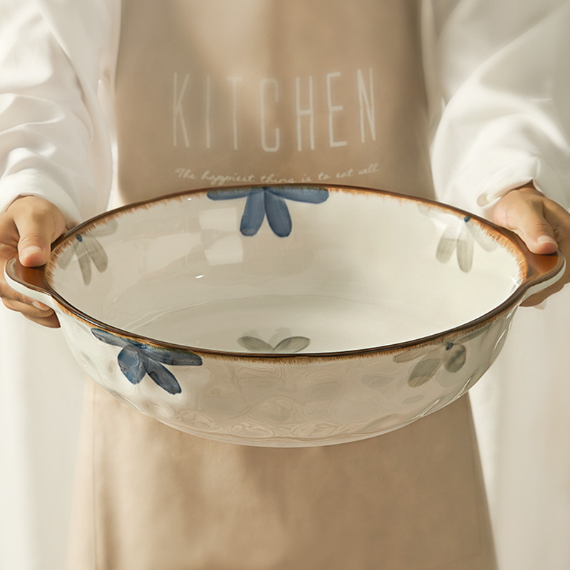 大鉢漬け魚大鉢家庭用特大双耳スープボウルプレートボウル 12inch ゆで魚セラミック大ボウルスープボウル