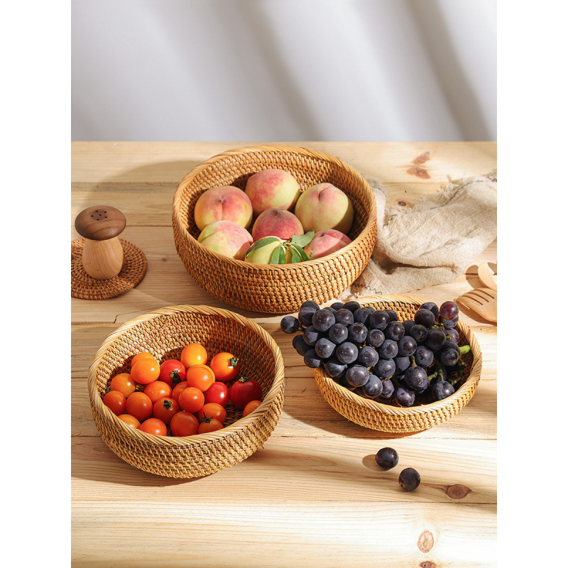 ベトナム籐収納バスケット織フルーツバスケットリビングルームホームフルーツプレートコーヒーテーブル収納バスケット竹バスケットフルーツプレート