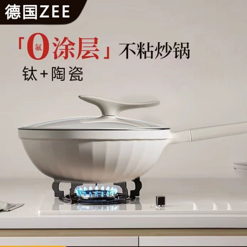 新疆送料無料ドイツチタンコーティングされていないチタン鍋中華鍋ノンスティック鍋家庭用ガスストーブ電磁調理器鍋陶器