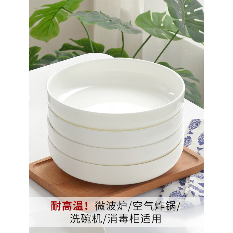 真っ白の骨磁器の皿の野菜の皿の家庭用の2024新型の深い巣の皿の蒸し皿の陶磁器の食器の深い皿の白い磁器の皿