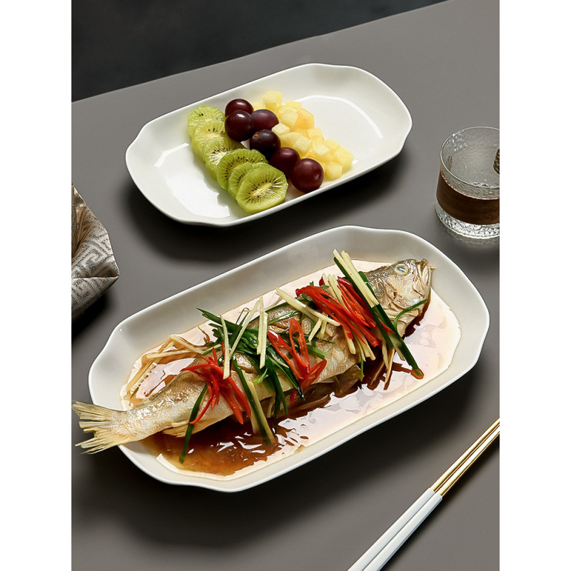 角型魚皿家庭用蒸し魚皿骨磁器蒸し皿14/10インチ深魚皿精致蒸し魚皿陶磁器高級感