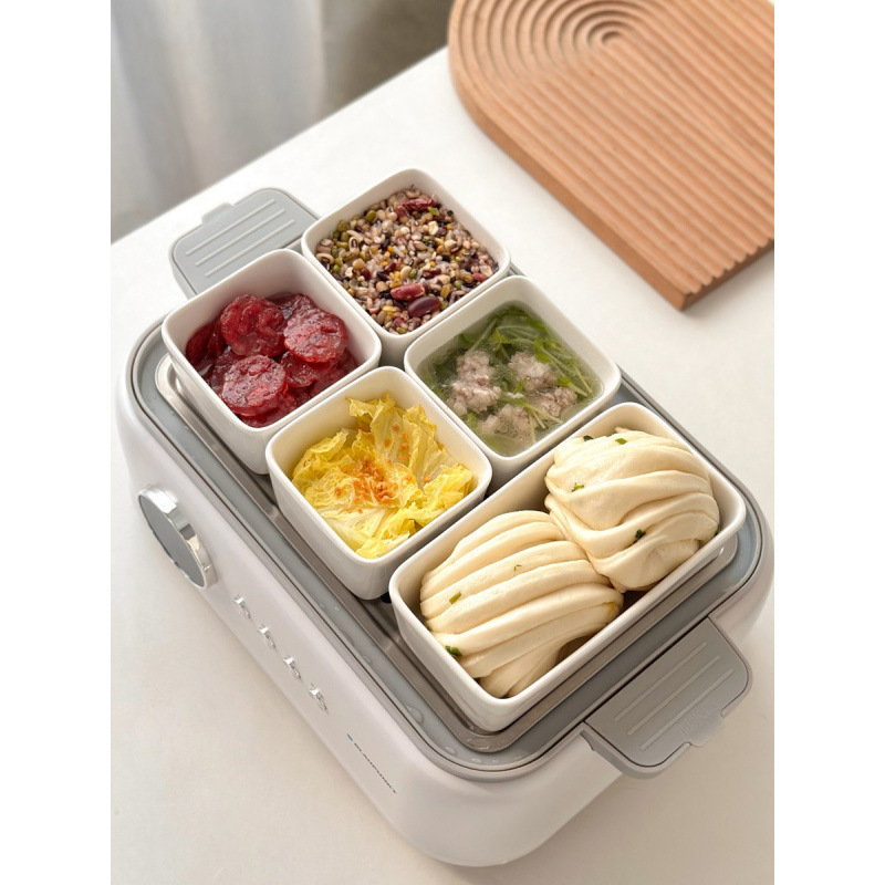 蒸し物の碗の蒸し器の軽食の碗の陶磁器の鍋は材料をつけて碗を蒸します。