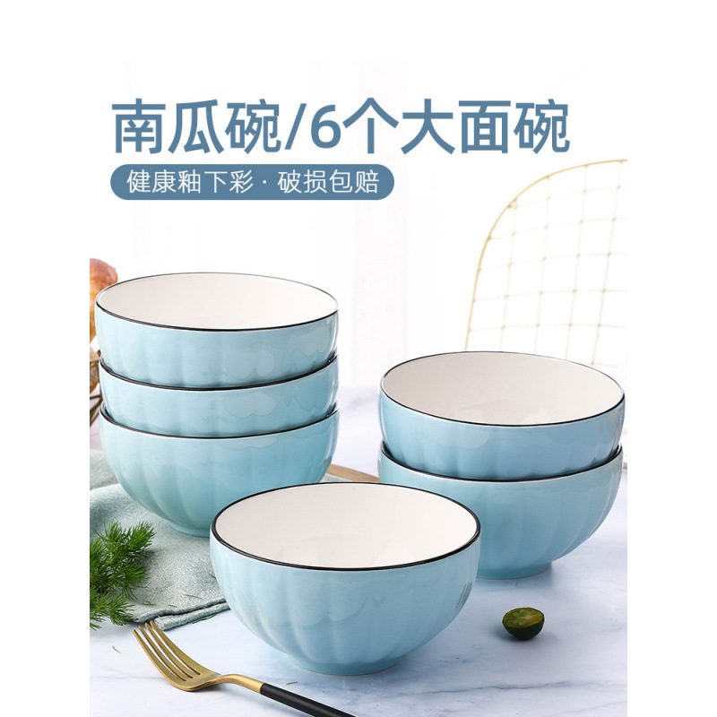 日本式の6つの大きい顔の碗の陶磁器の食器のセットのアイデアの泡の碗の個性の家庭の大きいサイズのスープの碗の組み合わせ