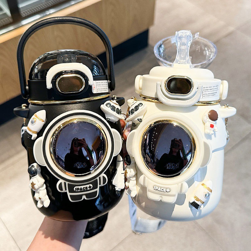 太空舱保温杯食品级宇航员大肚杯儿童水杯上学专用男孩吸管杯
