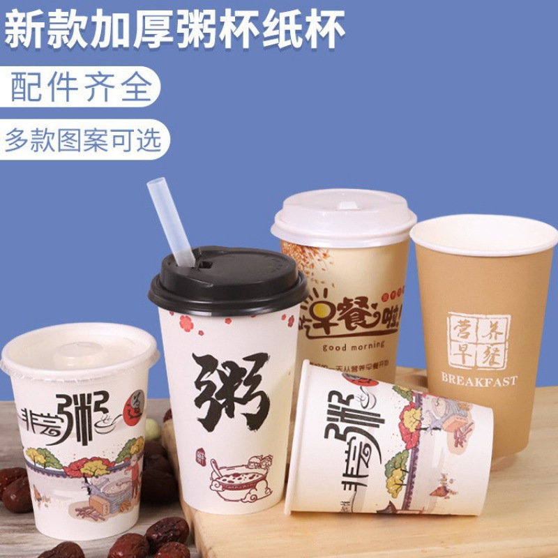 お粥カップ使い捨て業務用蓋付きストローカップ厚い豆乳カップ朝食お粥外付け希少なご飯包装カップ