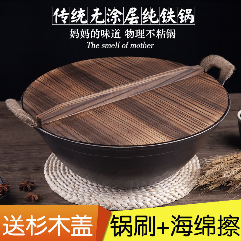 鉄鍋の手作り鉄鍋の古い鋳鉄鍋の両耳の炒め鍋は鍋の家庭用ガスコンロの専用炒め鍋工場にくっつかないです。