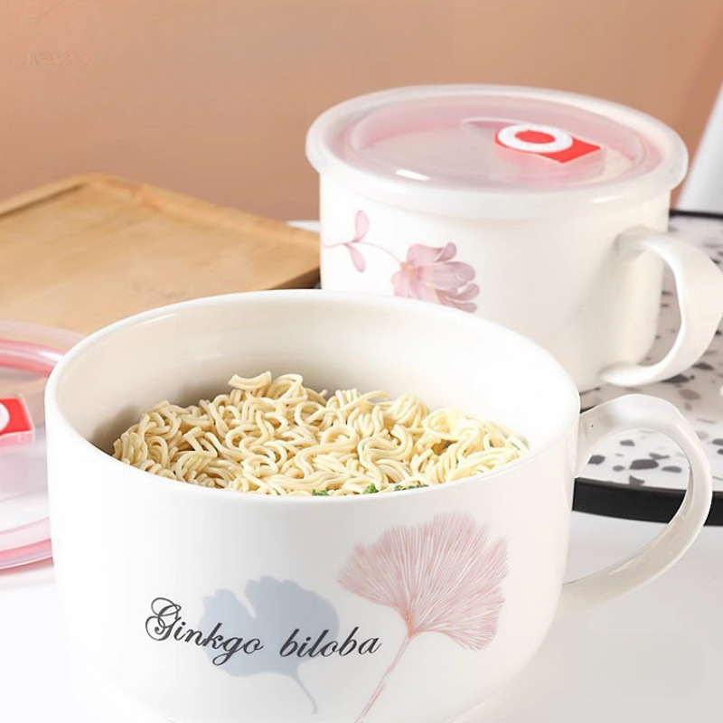 陶磁器の泡の碗のご飯の碗は蓋を持ってハンドルの新鮮な碗のインスタントラーメンの碗の弁当箱のスープの碗を持って電子レンジができます。