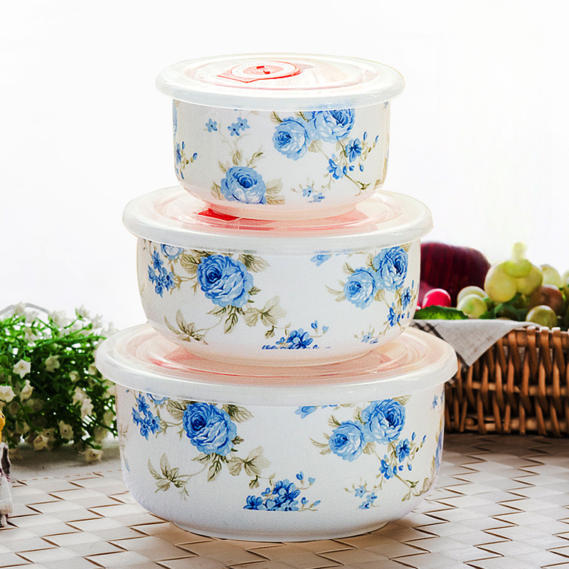 嘉蘭陶磁器碗電子レンジ弁当箱弁当箱密封保冷碗三点セット蓋付き電子レンジ北飛霞