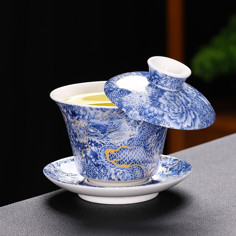 羊脂玉のホバリングは回転して碗の復古の3才の蓋の碗の大きいサイズの大容量の家庭用のお茶の杯の工夫の茶器をかぶせることができます。