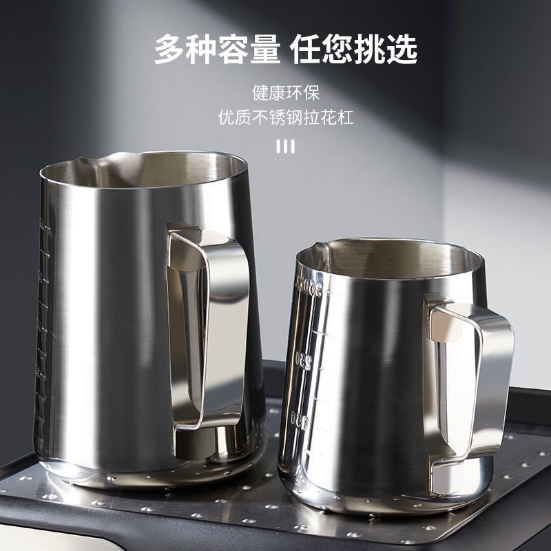 クロスボーダーの厚いステンレスのコーヒーの花の杯の食品級の乳の泡の杯の専門のラテの尖った口の花の缶の泡のコップ