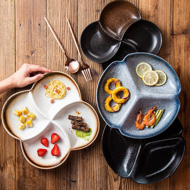 日本式陶磁器の定量的な分離子供の3段の皿の減脂朝食の食事の皿の1人の食器の家庭用