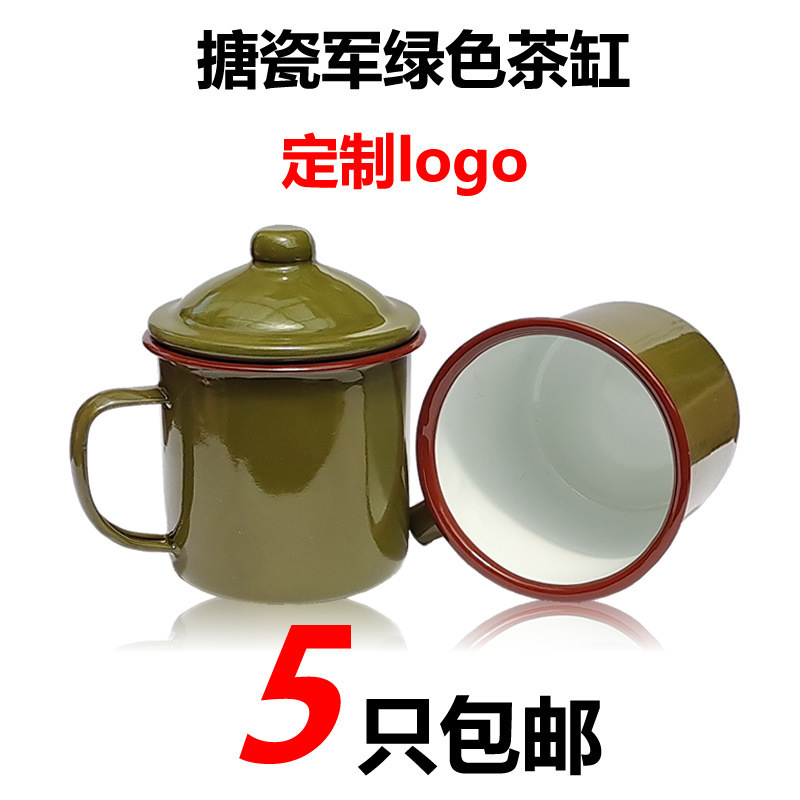 蓋付きカップエナメル業務用レストランティージャー増粘アーミーグリーンウォーターカップテーママグソリッドカラーティージャーノスタルジック