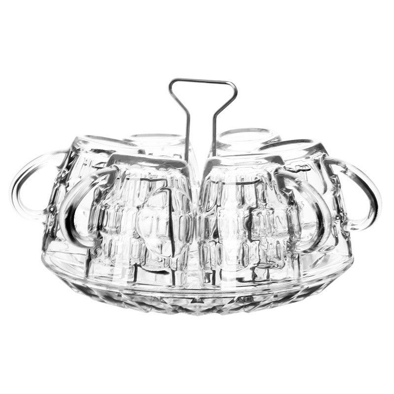 ガラスカップ ホームセット 6個パック トレイ付き カップホルダー 耐熱ビール ドリンクカップ ティーカップ ティーカップ