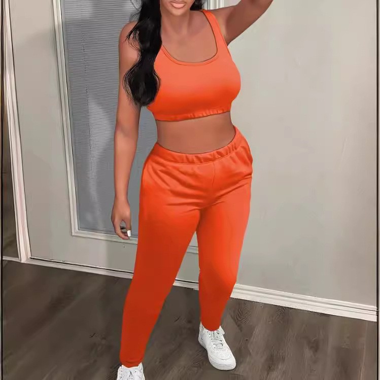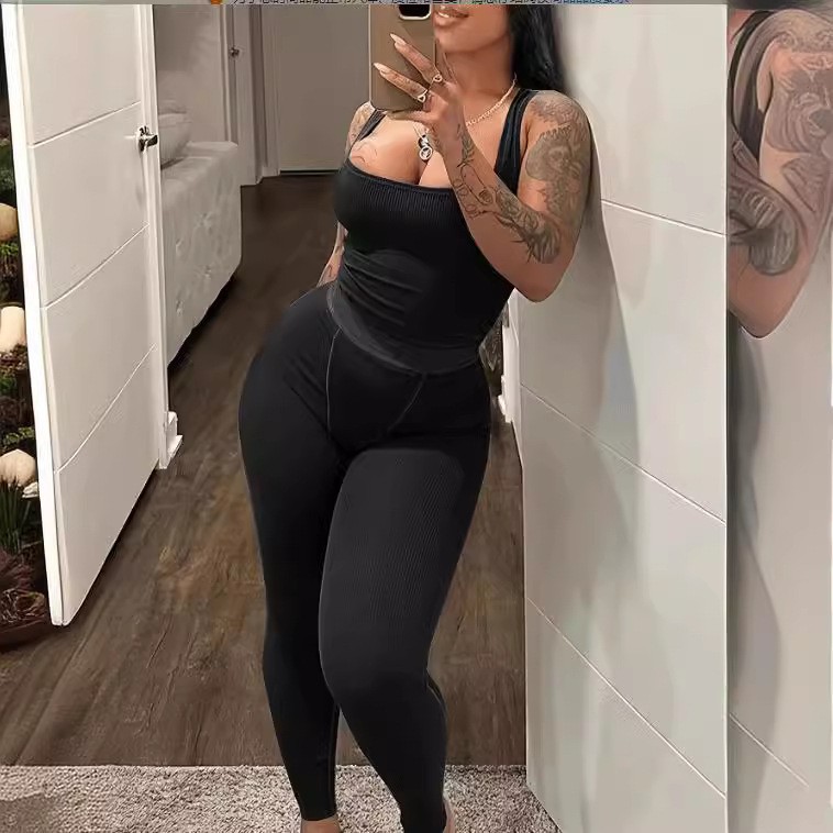 2024クロスボーダー夏新作ファッションノースリーブチョッキスリムヒップスーツ抹胸露背中カジュアル2点セット